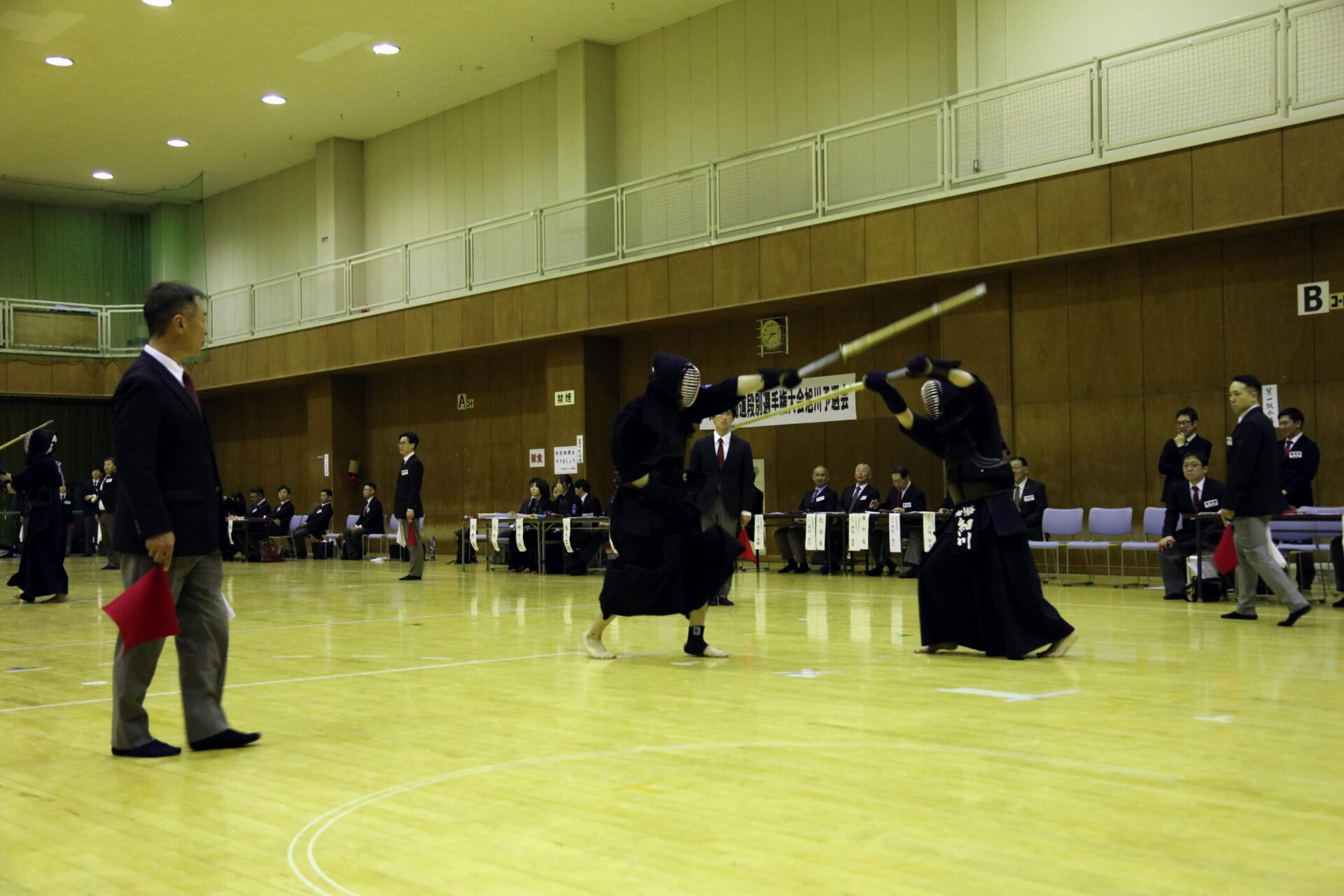 二段男子23名、二段女子7名、三段男子29名、三段女子10名、合計69名の選手が各部門の5名の代表選手の枠を賭けて試合が展開されました。